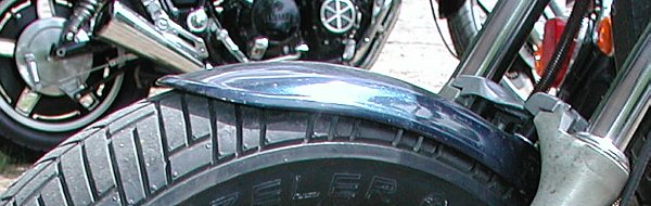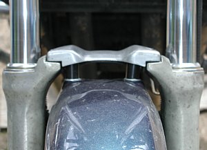 In the table above (in section #2), you'll see that the overall height of the front wheel after the modification is roughly 1" less. That leaves a large and unsightly gap between the front fender and the tire. As such, you'll also have to fabricate some spacers to offset the fender from the fork brace.