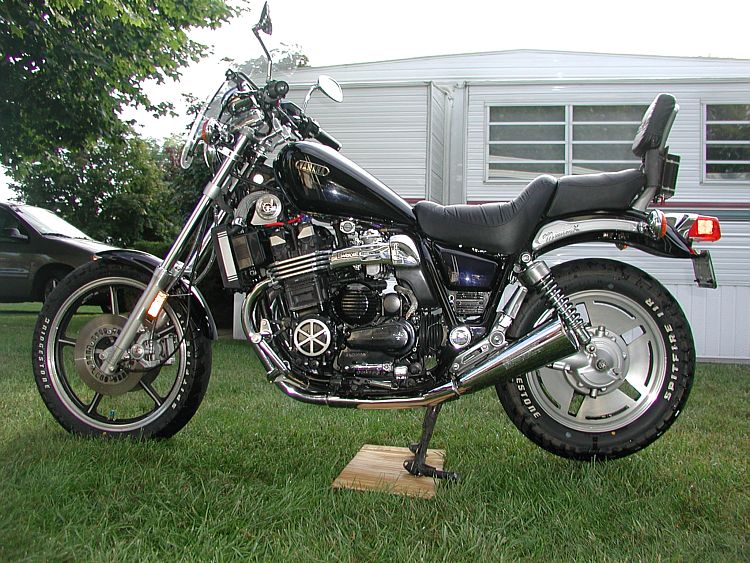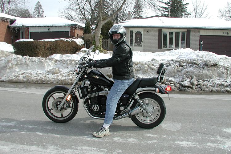 Here's a shot of me freeing my X for a brisk winter ride back in February 2004. I'm good to -4°C (25°F) and usually manage to get out on the road at least once a month during the winter, as long as the roads are dry. "I..... AM..... CANADIAN"... OK, I'm German, but I'm Canadian at heart. | |