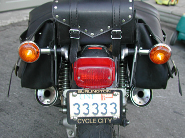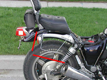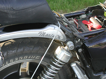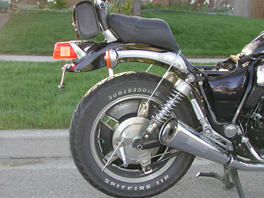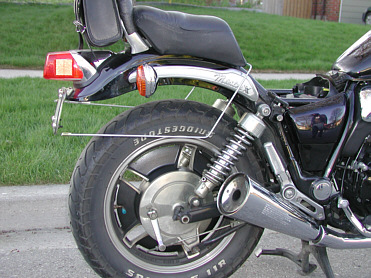 If you're like me and need saddlebags on your Maxim-X, you'll also need a retainer bar to prevent the saddlebags from rubbing the rear tire. At first I was reluctant to install one because I regularly remove my saddlebags and don't want a permanent retainer bar to effect the stock profile of the bike. In fact, I was so vehemently opposed to a permanent retainer bar that I simply allowed the saddlebags to rub the rear tire from time to time. Sadly, "from time to time" became "rather frequently" and before long the white lettering was gone from my tire and a hole was beginning to form at the trailing edge of my saddlebags.