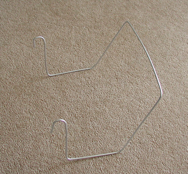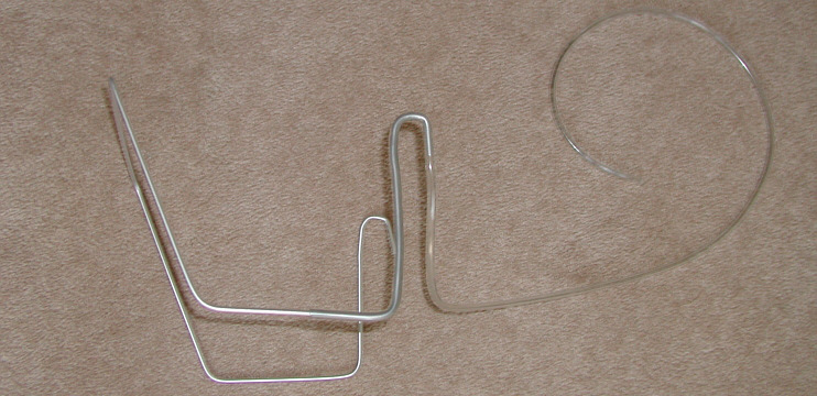 After some consideration, the solution just popped into my head. I could form one continuous bar that would hook over one rear flasher, pass one side of the wheel, cross to the other side between the front and rear seats, then pass the other side of the wheel and hook over the other rear flasher. The rear portion of the front seat latch was such that a bar could simply rest on top of it on its way from one side to the other so it would be a simple matter to remove the retainer bar by simply removing the front seat and lifting the retainer bar off the flashers and off its front resting point. The physical layout was perfect... but I still needed the right materials to fit some basic guidelines.