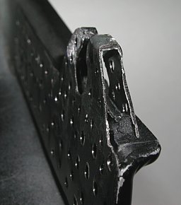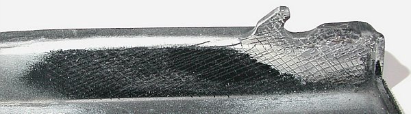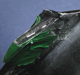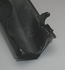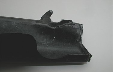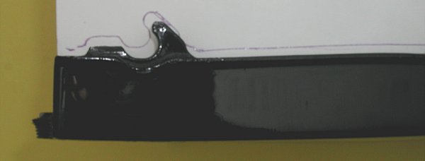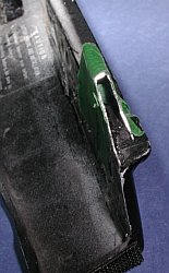 Clean and shape the new mounting post to approximate the original (no phallus jokes please - we all know that's what the posts look like  ). I shaped this one with a utility knife and a small file and was done in just a few minutes. To give the new mounting post a look of uniformity, I simply coloured the surface with a permanent black marker. |