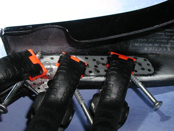 It was necessary to grind down the diameter of the head of the screw to something less than the maximum diameter of the knob at the end of the mounting post. The head diameter has to be small enough to keep the metal from being exposed when the mould is complete.