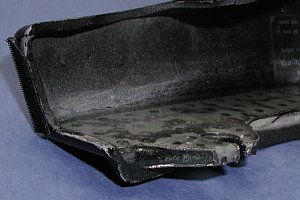 To finalize the repair, stand the side cover on its edge so that the open side of the mounting post base faces upward. Then fill the recesses below the mounting post base with epoxy. This will secure the threaded mounting post shaft in the base permanently (hopefully).
